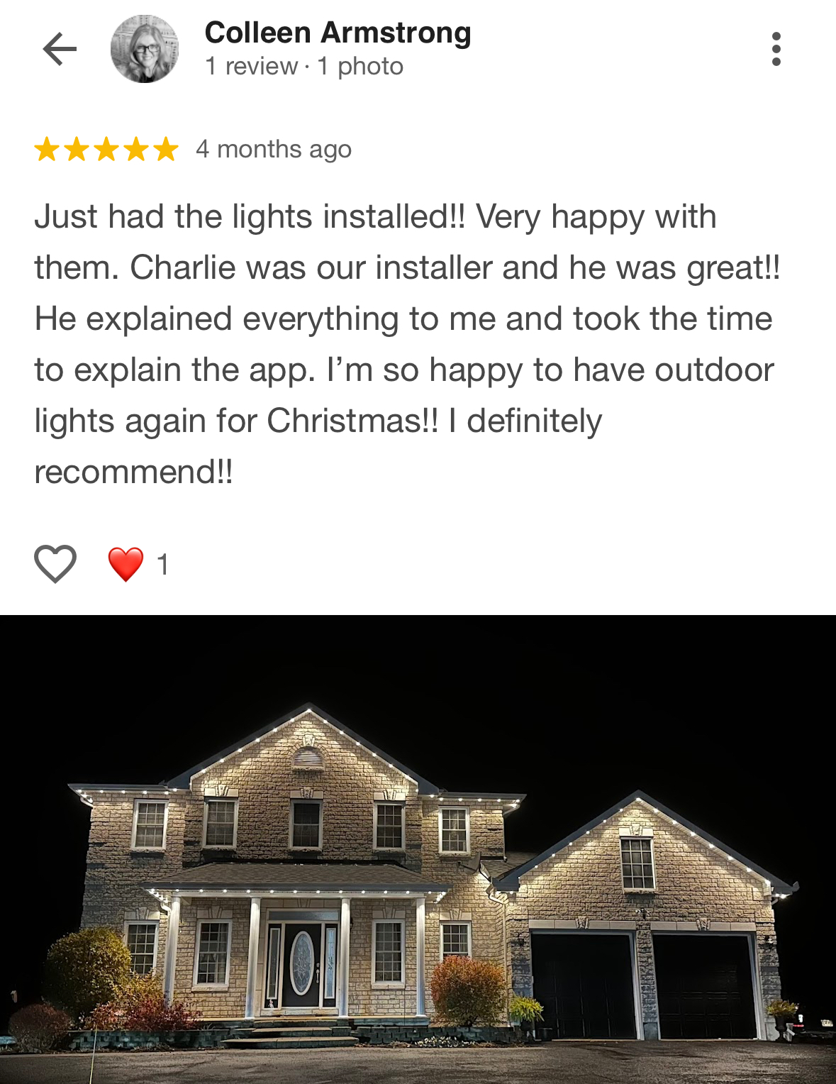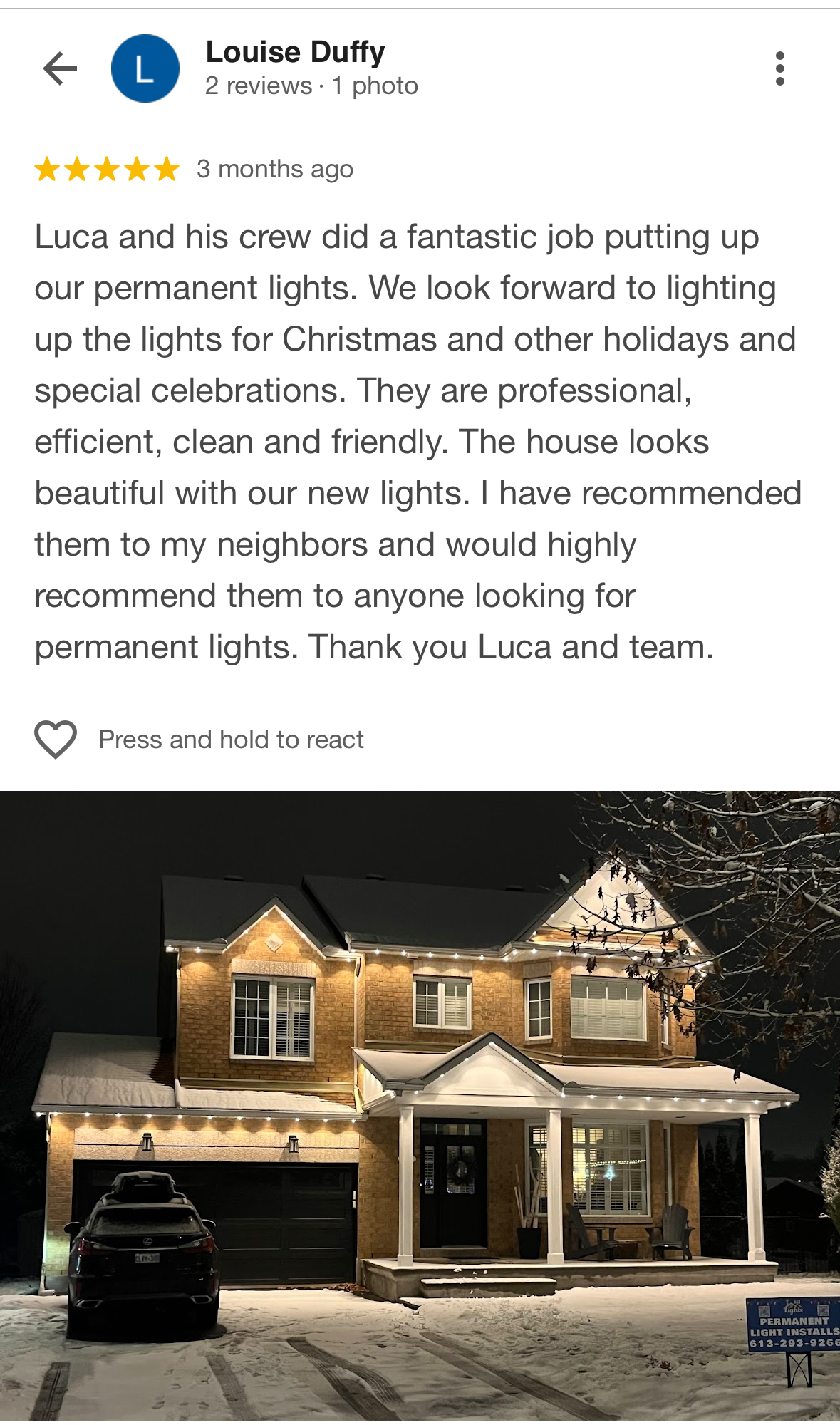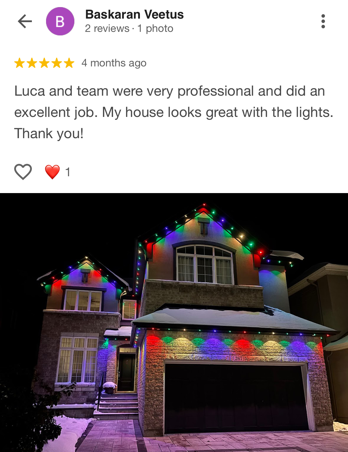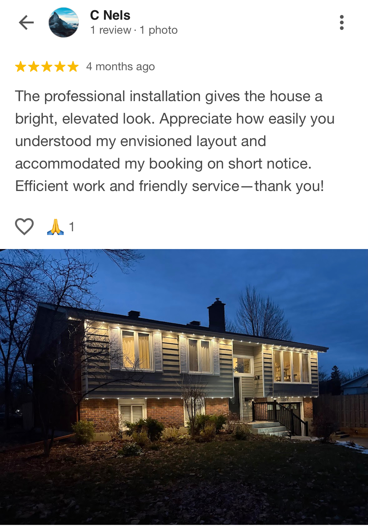 The free Ring security camera and free installation (valued at $650) is conditional upon the purchase of a qualifying permanent LED track lighting installation package as designated by 613 Lights at the time of booking. The free Ring camera and installation will only be applied when the lighting installation package is booked and paid in full. This offer is limited to the first 40 qualifying installations of the season and cannot be combined with other promotions, applied retroactively, or redeemed as a standalone service. 613 Lights reserves the right to modify or withdraw this offer at any time without prior notice. Additional restrictions may apply.