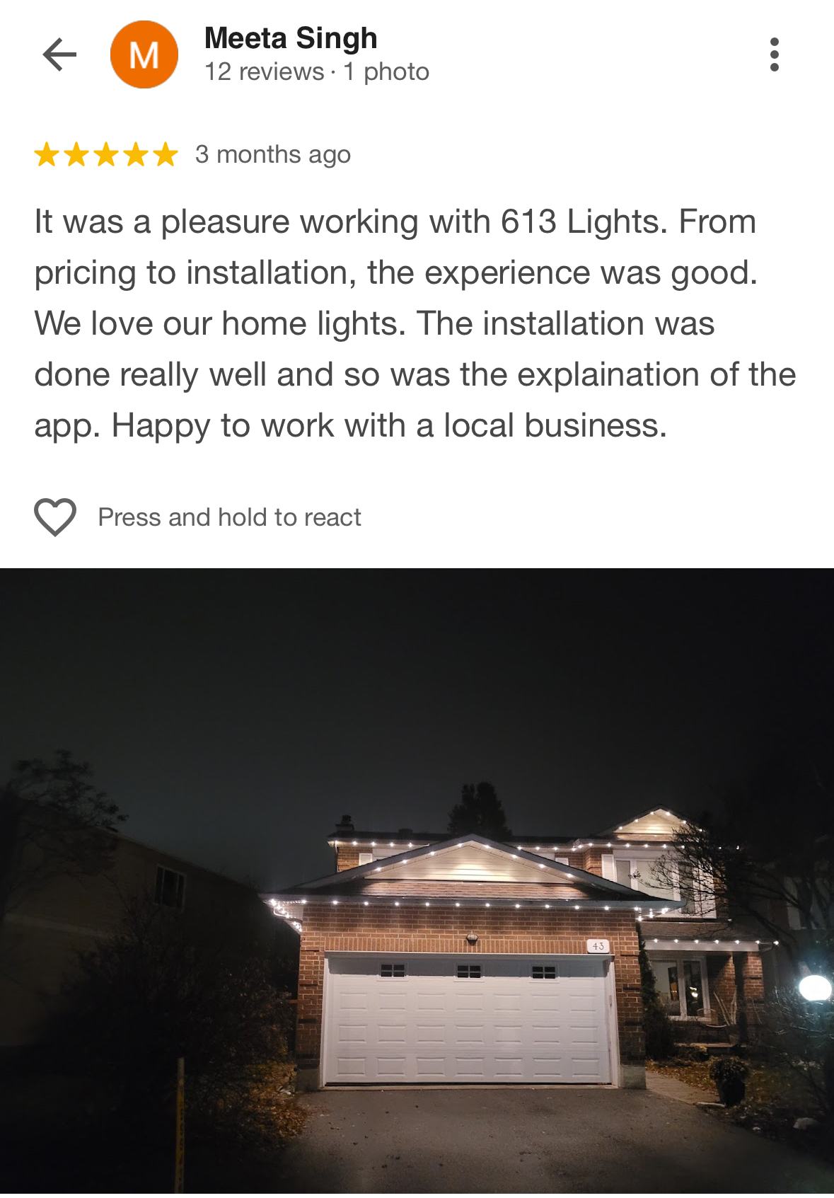 By using this site, you agree to our Terms & Condition, Privacy Policy. 613 Home Services Inc. O|A 613 Lights is not affiliated with Facebook or Instagram in any way.
